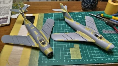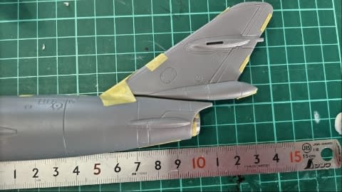 SMERのMig-17F/Lim-6bisを作る♫(その3) Mig-17F/Lim-6bis Twitter Facebook はてブ Pocket LINE コピー 2025.01.31 Mig-17F(Lim-6bis)に続いてMig-17Fをマスキングテープ留めしてみました。胴体パーツは別物ですね。 Lim-6bisの垂直尾翼。胴体との接合面はパチピタとは行きませんね、大胆なすり合わせが必要です!梨地の表面をペーパー掛けしてみました。 全体をペーパー掛けしていきますね♫あれこれ妄想…構想中!(゚ο゚人))