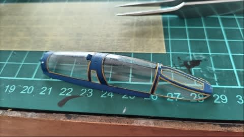 ウインドシールド部分にハセガワのクリアブルーフィニッシュを裏から貼ってみました。