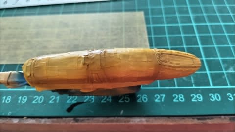 マスキングしたキャノピー、シールド部分をエアブラシ塗装しました…