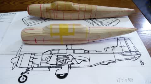 デストロイヤーを作ろうかと(o・д・) その4 Douglas XSB2D-1 BTD-1 Twitter Facebook はてブ Pocket LINE コピー 2022.08.13 胴体木型をペンサンダーでサンディングしました。キャノピー部分も合わせてみました。(o・д・)