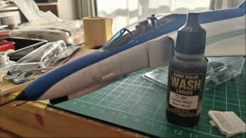 で、パネルラインが少し見えるように軽くウォッシィング、ファレホのウォッシュを使ってみました。どうかな?