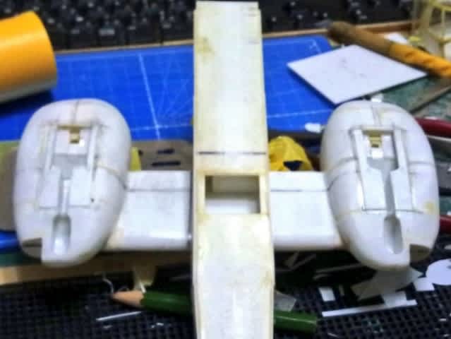 なかなか進みませんが、焦らず工作しています。本日はエンジンナセル下面、脚庫を作ってました。